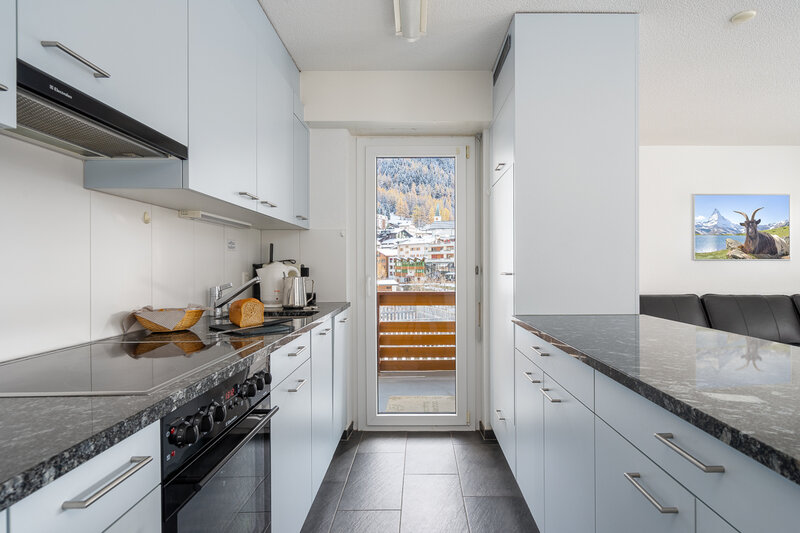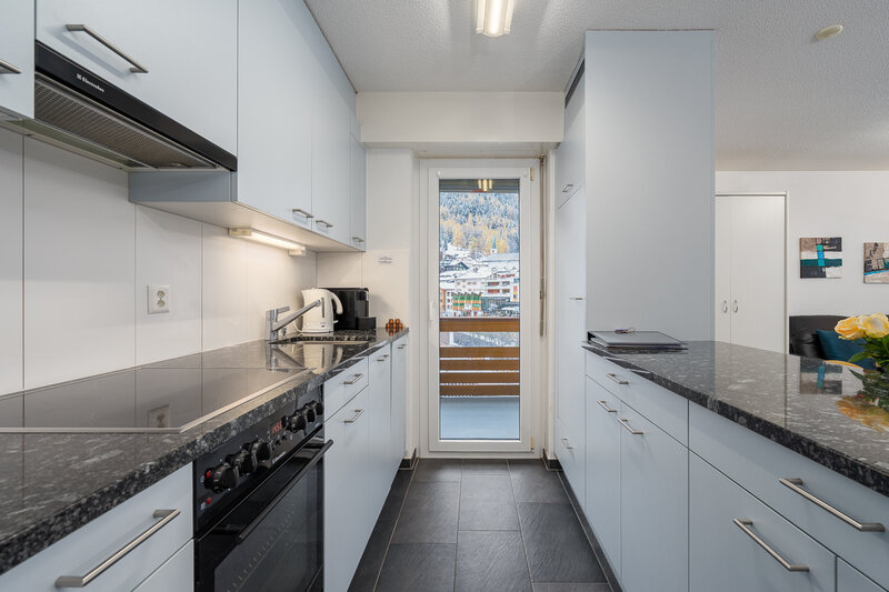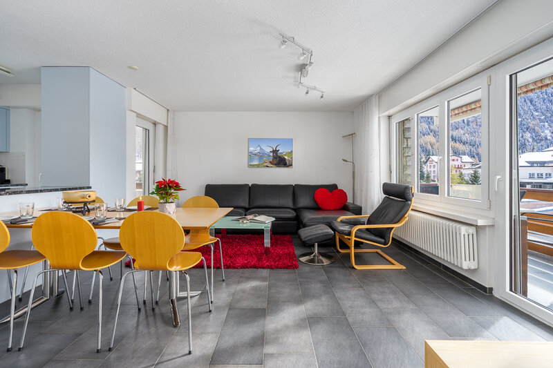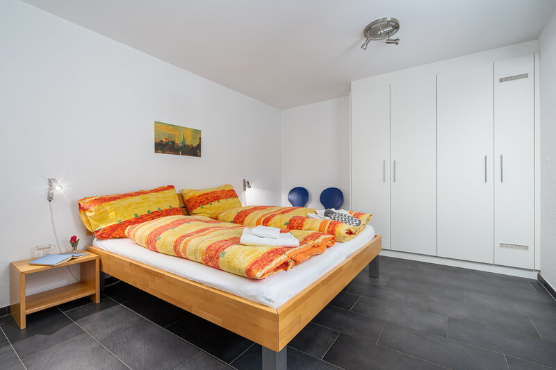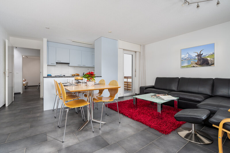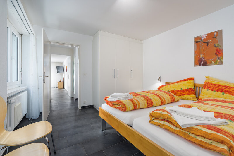 Die grösste Wohnung (Nr. 27, 3½-Zimmer, ca. 80 m2) bietet Platz für bis zu 6 Personen. Sie verfügt über ein Doppelzimmer, ein geräumiges Wohnzimmer mit Ecksofa, Sessel, TV, WLAN, Esstisch, Balkon mit Sonnenstoren, Tisch und Wäscheständer, eine gut ausgestattete offene Küche mit Geschirrspüler, Mikrowelle, Kaffeemaschine, Toaster, Wasserkocher, Fondue-Caquelon, Raclette-Ofen und kleinem Balkon, ein Badezimmer mit WC/Dusche und Föhn sowie ein grosses Zimmer mit Doppelbett, Kajütenbett, TV, kleinem Tisch, eigenem Balkon mit Sonnenstoren und eigenem Badezimmer mit WC/Dusche.